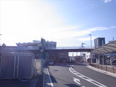 その歩行者デッキを歩いていくと、長く続くデッキと広々としたバスロータリー、そして堂々たる高層マンションの姿が、印象的だ。