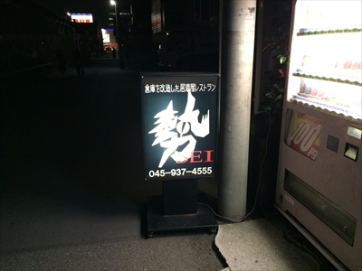 第一京浜子安ランプ入口の横にある「倉庫を改造した居酒屋レストラン 勢 」という店がキニナル。入り口は居酒屋風、上にかかっている看板は洋風という変わった造り。どんな料理があるのか取材を!(環2の星さん)