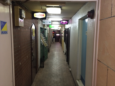 取材日は土曜日、時刻は午後9時。休日だったり、仕事を終えた戦士たちもいい感じにできあがっているころだ。廊下を進むと前を通った店の中からカラオケの歌声や嬌声が聞こえてくる。
