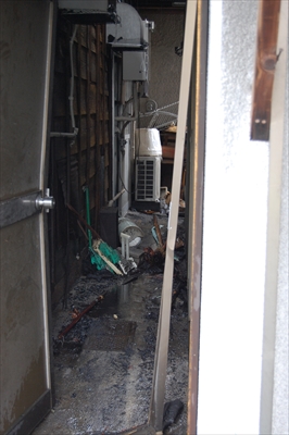 2階部分が黒く焦げている(2日午後12時ごろ)