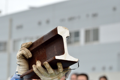普通に生活していたら一生見る機会はないものかもしれないだけに、子どもはもとより大人も興味津津。火花を散らしながらレールが切断されたシーンでは、拍手と歓声が沸き起こった。