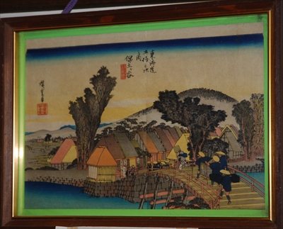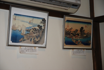実は近藤さんの親戚に摺師(すりし)の方がいたそうで、これらはコピーや印刷ではなく、すべて本物の版画だ! 近藤さんは五十三次すべての版画を所蔵されているそうだが、ここに飾られているのは、日本橋から藤沢までの宿のもの。