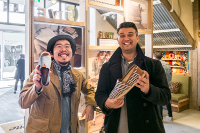スタッフの小林さん(左)と「TOMS」スタートから携わっているハジメさん