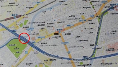 大岡川に架かる南区蒔田公園橋。この橋を過ぎたところから分流する