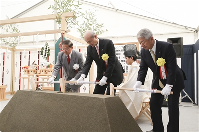 リニア品川駅、新設工事着手時の鍬入れ(JR東海提供)