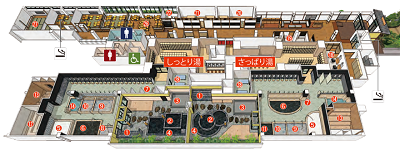 フロアマップ。高架下なので細長いつくり(みうら湯HPより)