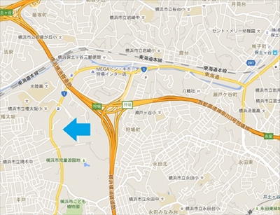 モノレールのある場所(青矢印)