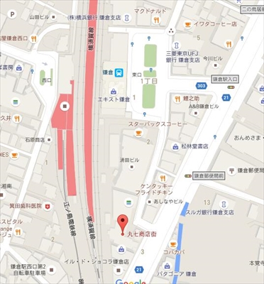 JR鎌倉駅東口から徒歩5分。丸七商店街の通りの一番奥にミニチュア専門店「イクスタン」が見えてくる。