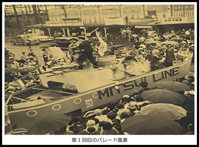 「ザよこはまパレード」は、1953(昭和28)年6月2日の横浜開港記念日に始まった。戦後復興が遅れていた横浜に活力を生み出そうと、商工会議所の発案で生まれたという。