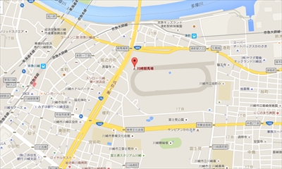 周辺には京急川崎駅、京急大師線港町駅、川崎競輪場、堀之内がある(Googlemapより) ※クリックして拡大