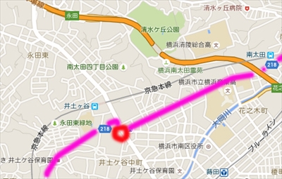平戸桜木道路(県道218号線)は、井土ヶ谷付近では、ほぼ京急線の線路と平行する道だ。横浜駅から京急に乗って、いざ現地へ。