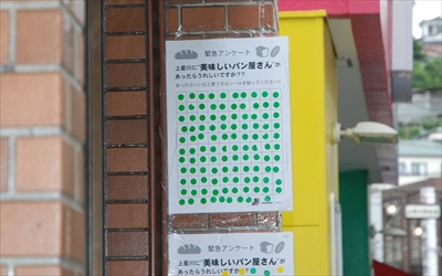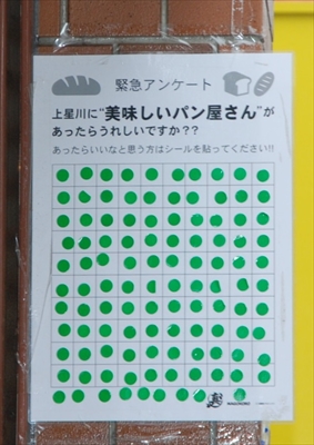 上星川商店街に、ここ数カ月「上星川にパン屋ができたらいいと思う人はシールを貼ってください」という謎の張り紙が掲示されています。ほかの選択肢もなく何かの調査ではないようですが一体何?(食物繊維さん)