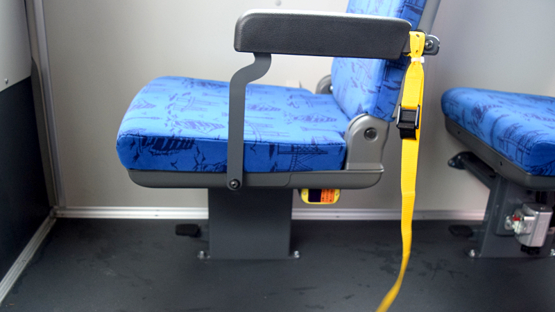 車イス利用者が乗れるように、座席を上げると
