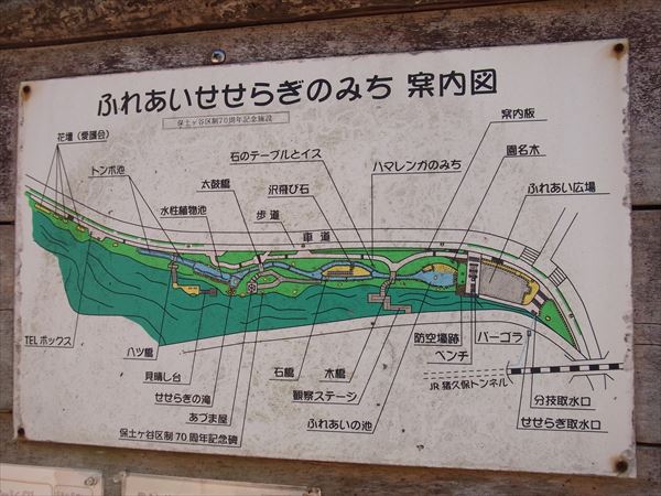 交通量の多い国道16号線から1本入り、相模鉄道に沿って走る道路の和田町駅を過ぎたあたりで左折すると、それまでの市街地の雰囲気とは違う、「カーリットの森」という自然が保護された緑地内に出る。その地区の入り口付近に「ふれあいせせらぎの道」という緑の中を散策できる道が整備されている。