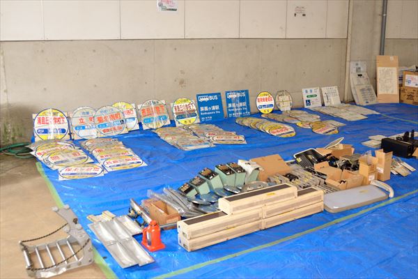 今回は人気商品の方向幕(バスの行き先表示の幕)は出品されておらず、目玉はバス停のプレートだったとのこと。分かる人にしか分からない価値があるようで、バス好きのお客さんは目を輝かせながら商品選びに夢中の様子だった。