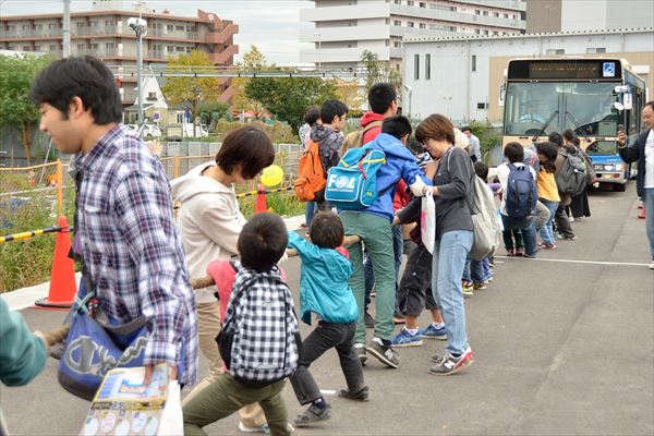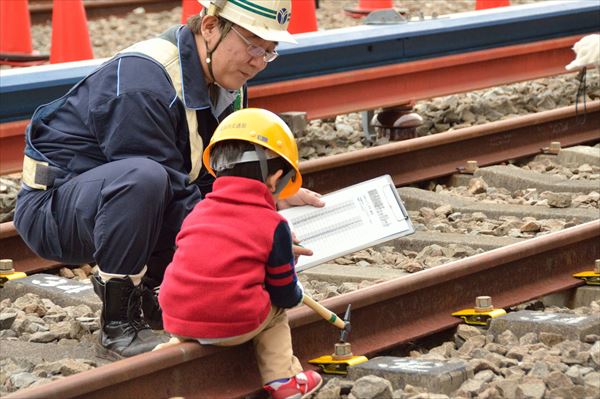 ほかにも、線路の点検作業を体験できる「線路を体験してみよう!」や、重さ12トンの市営バスを30人で引っ張る「バスと綱引き」、小さな市営バスを運転できる「ミニバスサーキット」などが行われ、親子連れを中心に長蛇の列ができたり、整理券があっという間になくなったりしていた。