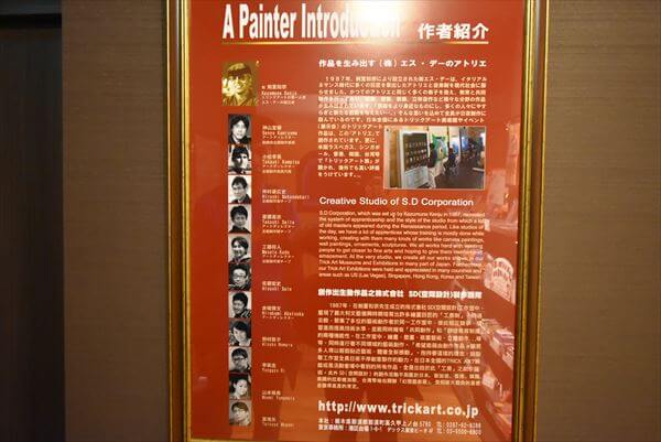 故・剣重和宗(けんじゅう・かずむね)さんが1984(昭和59)年にトリックアート壁画の制作を開始し、1987(昭和62)年に株式会社エス・デーを設立(2017年で30周年!)。同社が運営する美術館は、横浜トリックアートクルーズを入れて19館!