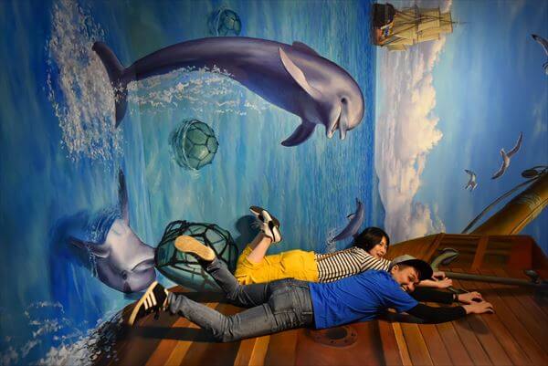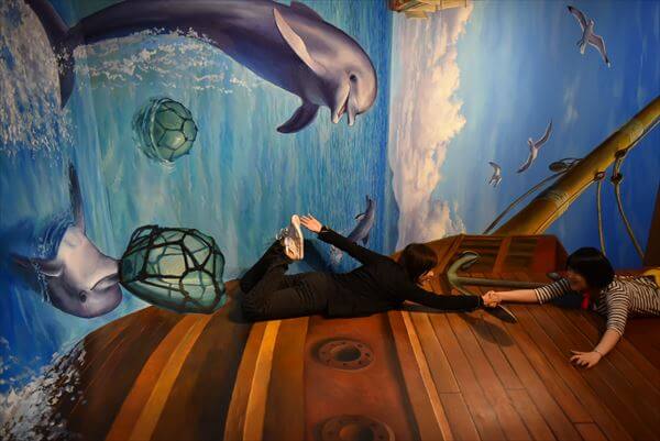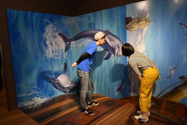 普通の美術館は作品のタッチはNGだが、トリックアート美術館の場合は作品に触れてもOK!
