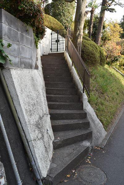 辺りは閑静な住宅街で人通りもまばらだが地元住人の情報もほしいので、人が通りかかるたびに「自動車(タクシー)が通れる階段がこの付近にありませんか?」と聞いてみる。しかし、「聞いたことないですね」(大学生風の男性)、「そんなもん見たことも聞いたこともない」(なぜかちょっと怒っている年配の男性)と立て続けに存在を否定される。