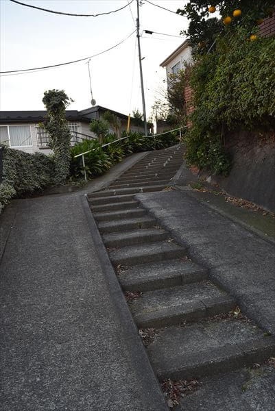 配達中の郵便局の方にも声をかけてみる。「車が通れる階段? 知っていますよ。住宅地の中でもいいんですよね?」「マジですか?(思わず本音が・・・)。」やった! ついに発見か? 「場所を教えてください!」とお願いすると、さすがは郵便局の方、すぐに住所を番地付きで教えてくれた。プロフェッショナルである。さっそくスマホで検索する。おお! ここか。丁重にお礼を申し上げ、教えてもらった住所に向かう。