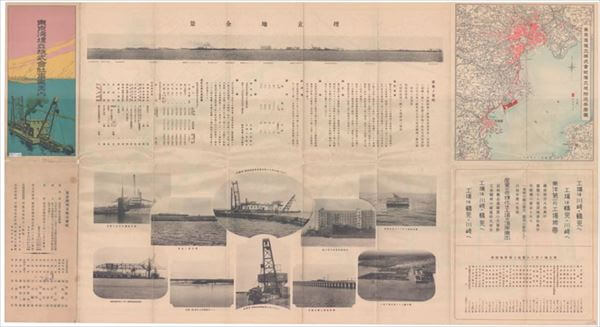 1939(昭和14)年の東京湾埋立株式会社事業案内の表紙。工事に使用する機械などの写真が(東亜建設工業株式会提供)