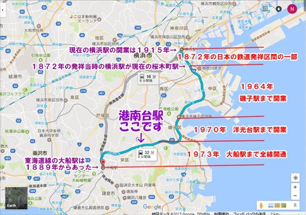 根岸線の歴史(Google mapに筆者書き込み)