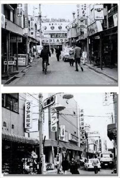 1972(昭和47)年(上)と1986(昭和61)年の駅前の様子
