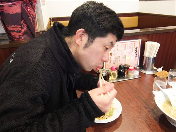 うん!! これもうまい!! チャーメンはこってり濃い目の味付けで、ニンニクが効いていて食べながら、さらに食欲がそそられるぜ。麺は柔らかい食感だが、ボリュームもあり食べごたえもあるし。チャーメンをおかずに、半ライスを食べるお客さんもいるそうです。