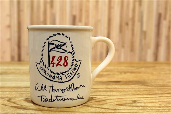 手書きのロゴがかわいいFREEWAY428のマグカップ