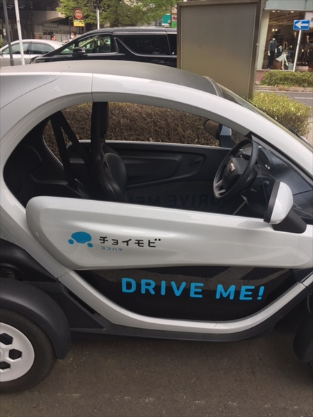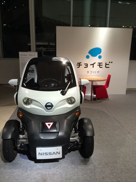 2013年10月から横浜市と日産自動車が開始した「チョイモビ」は、横浜市内のみで走行可能な2人乗りの超小型電気自動車(EV)を用いたカーシェアリングシステム。