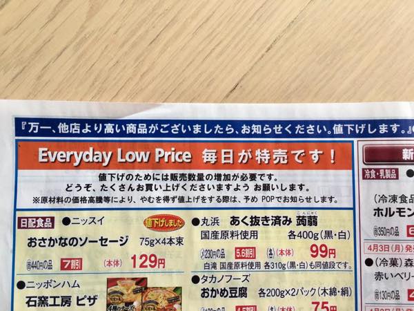 このほか、止むを得ず値上げを行う際には「値下げのお知らせPOP」で事前告知まで掲示するオーケー。