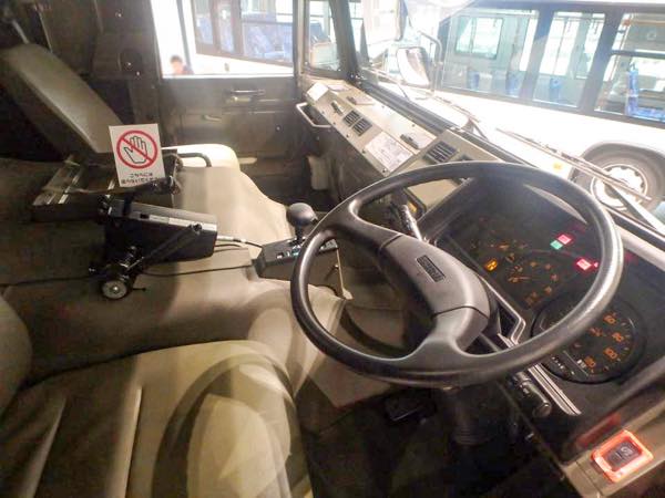 さらに奥へ進むと、巨大なトラックや自衛隊用の車両などの展示室となっている。なかなか近くで見ることも、ましてや乗り込むこともできない車両に、ここでは思う存分触れることができるのだ。