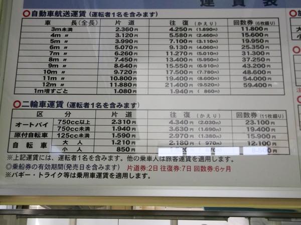 対する東京湾フェリーは、車の場合は片道最低2360円から、それに大人片道720円となっていて、その差は大きい。