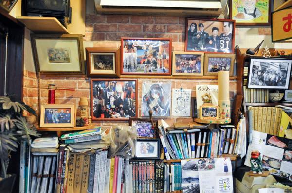 常連さんの写真や本などが雑多に置かれている。そんな風景にも古き良き時代の面影を感じる。ザ・昭和の雰囲気が漂うが、意外にもオープンは1998(平成10)年9月8日とのこと。