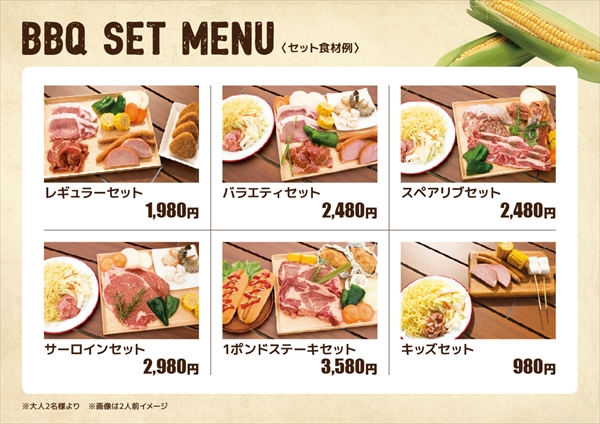 全6種類のフードセット(1980円~)もあるので、手ぶらでバーベキューも可能!