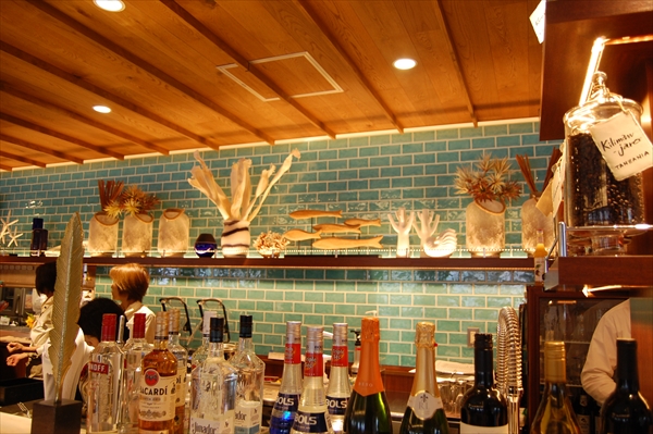 リキュールがぎっりし並ぶバーカウンターも