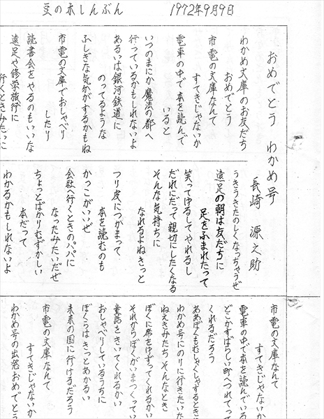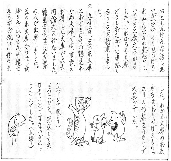 「わかめ文庫」開設を祝う、「豆の木文庫」が発行した『豆の木しんぶん』の一部