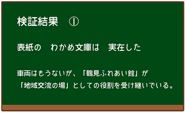創作童話なのだが、よく調べると表紙の「わかめぶんこ」と描かれた車両は、かつて横浜で実際に供出された車両が地域文庫(図書館)として活躍した「わかめ文庫」の事例と車両番号まで合致している。なかなかすごい絵本だ。