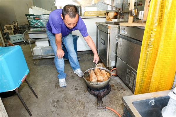 麺づくりの仕事が終われば次はチャーシュー。時間をかけて煮込む
