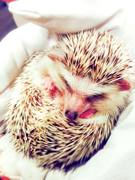 インスタグラムで定番の、手のひらで丸くなるハリネズミ(インスタ映えイメージ)