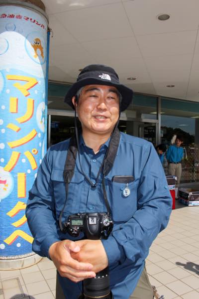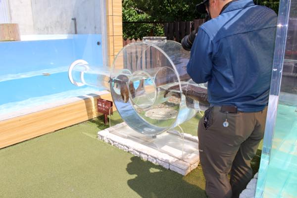 平木さんは、カワウソを撮るために週に1回の割合でマリンパークにきているほどのカワウソ好き。「バス停が出来たので来るのがさらに楽しみになりました」と平木さん。