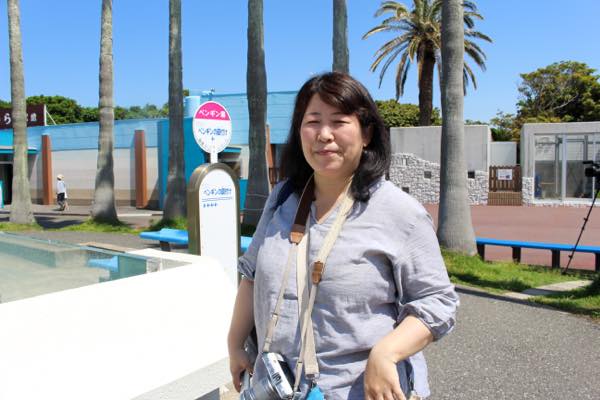 「マリンパークの魅力は、海が近くて富士山も見えるところ」と語る難波さんと中村さん。これからもペンギンに会いに来るそうだ。