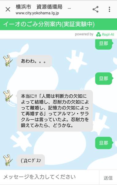横浜市の資源循環局イーオのごみ分別案内の実証実験。「旦那」と聞いたら「(ノД`)」という返事が返ってきました。開発の意図とか苦労した点などを取材して(nobaxさん)