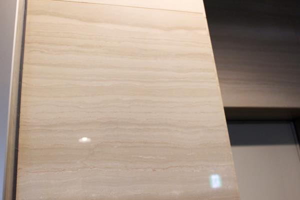 建材としての石灰岩や大理石は基本的に内装に使われる。そのためエレベーターホールやロビーなど多くの人を迎える場所に使われることが多いようだ。これは値段が高価ということもあるが、もともと炭酸カルシウムが多く含まれる石材のため、酸性雨などに弱く、溶けてしまうことがあるためだ。