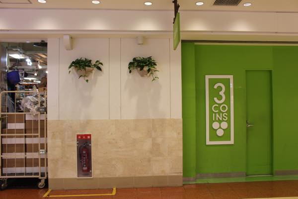 「3COINS」前の壁にも