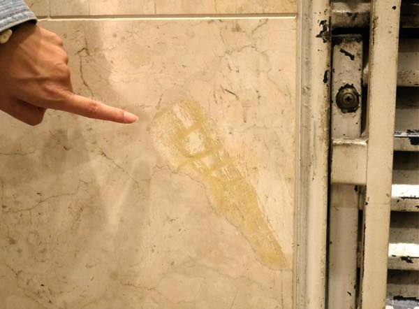 よく見ると、柱の下部分に大理石を張り付けられているようだ。