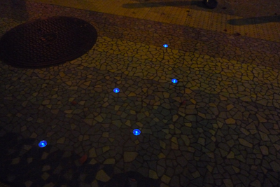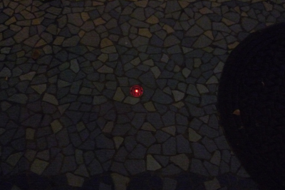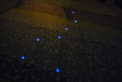 ところが、このタイルをじーっと見ると、その中に丸いライトが埋め込まれているのに気付く。
