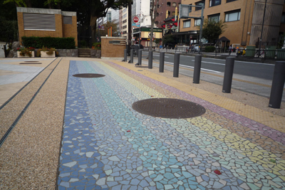 昼間はただのタイル。奥には中華街の北門が見える