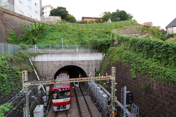 日ノ出町駅横の陸橋からは京急線のトンネルが見える