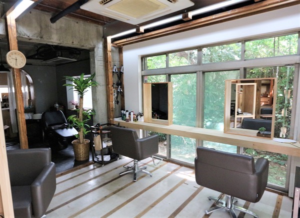 貴寛さんは「庭を見ながらリラックスできる『和』をコンセプトとした美容院」を作りたいと考えていた。ここは駅からそう遠くないのだが、繁華街とは崖で隔離され、落ち着いた雰囲気を感じる場所だったのに加え、広い庭がある趣のある古民家で、イメージしていた「和を感じさせる美容院」にピッタリと一目惚れしたそうだ。